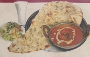 マライティッカ、バターチキンカレー、ほうれん草エビカレー、お好きなナン、サラダ、ソフトドリンク、デザート