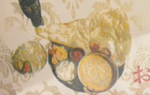 チキンカレー、ミニナン、ミニライス、サラダ、ラッシー又はマンゴラッシー 他