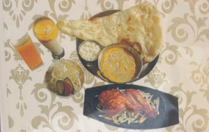 カレー2種(カレーメニューから2種類選べます)、チーズナン、プレーンナン、パパド(2P)、サラダ、シークカバブ(2)、チキンティッカ(2P)、デザート(2つ)、ソフトドリンク(2杯)